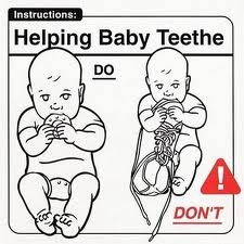 Apparently, the only way the doctor will know for sure is the same way we will – actual visual evidence. (Apparently the stars I’m seeing as a result of the kid’s agonized screaming doesn’t count.) As of now, we’ve seen neither hide nor hair of a single goddamn tooth for the two months since he started crying and chewing and everyone subsequently started telling us that he’s teething.